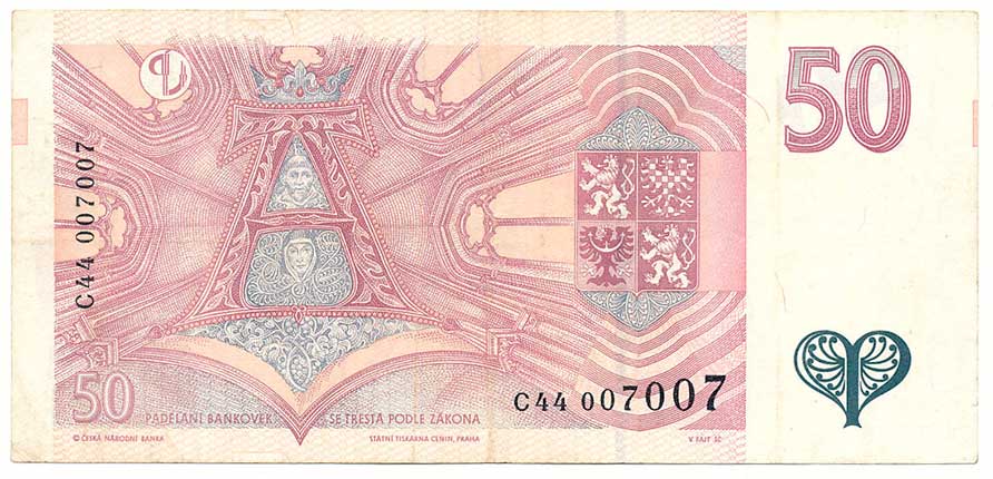 | 2110. | 50 Kč 1993 s.C44, tzv. dvojitý James Bond 007007 | 2 | 400,- | --.- |