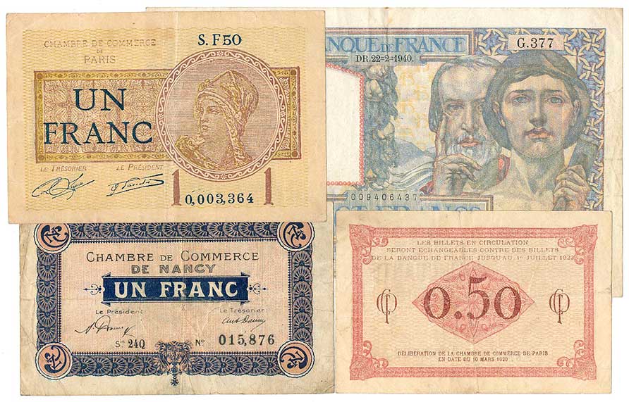 | 2121. | 50 Ct.1920, 1 Fr.1920, 1 Fr.1921, 20 Fr.1940, 4ks | 2-3 | 60,- | 95,- |