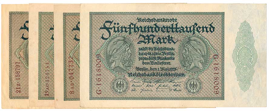 | 2128. | 500000 Mk. 1.5.1923, s.G,8AB,19AC,21Z,různé číslovače, 4ks | N-1 | 100,- | 100,- |
