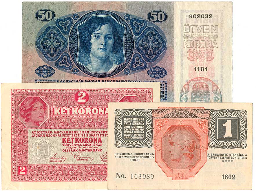| 2134. | 1,2,10,100,1000 Kronen 1922 (N), 20 Kronen 1922 (1, skvrnky), 6ks | - | 100,- | --.- |