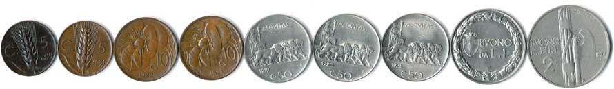 | 841. | 5,5,10,10,50,50 Centesimi, 1919,31,22,23,19,20,25, 1 a 2 Lire, 1922,24, 9ks | 0-1 | 180,- | --.- |