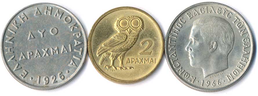 | 949. | 2 Drachma 1926, Athéna, 1973, sova, 5 Drachma 1966, Constantin II., 3ks | 0/0 | 50,- | --.- |