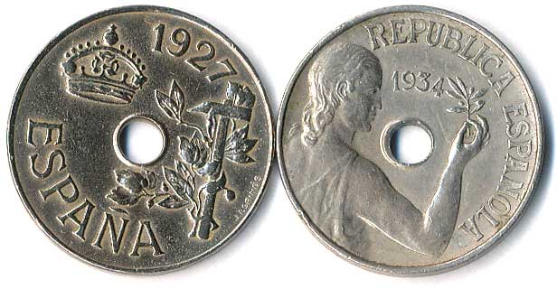 | 963. | 25 Centimos 1927 S, Julio Segura Calvé, 1934, Republika se snítkou vavřínu, 2ks | 1/1 | 50,- | --.- |
