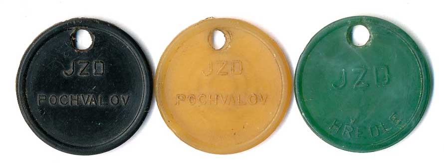 | 1216. | JZD Všetaty, světlý okr, JZD Kolešovice, červená, JZD Lašivice, nažloutlá,