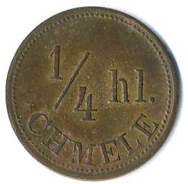 | 1233. | Václav Heidenrtaich Lipenec č.56 / 1/4 hl. chmele, kontramarka kruh, Cu21 | 0/0 | 100,- | --.- |