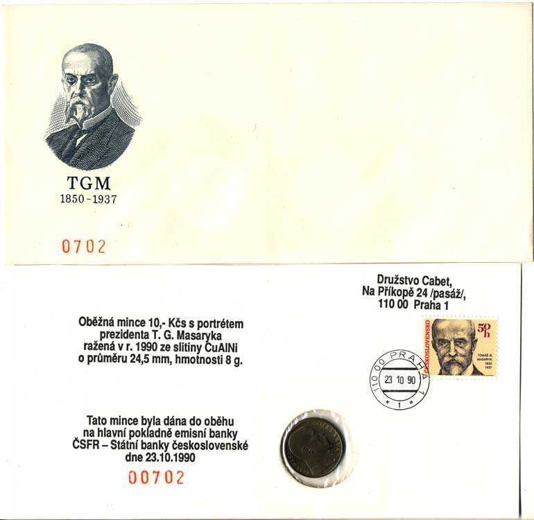 Družstvo Cabet Praha, mincovní dopis č.0072, |