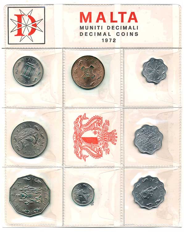 | 1298. | Malta - sada 1972, 2,3,5 Mils, 1,2,5,10,50 Cents, UH přebal, místy zelený povlak | 0/0 | 90,- | --.- |